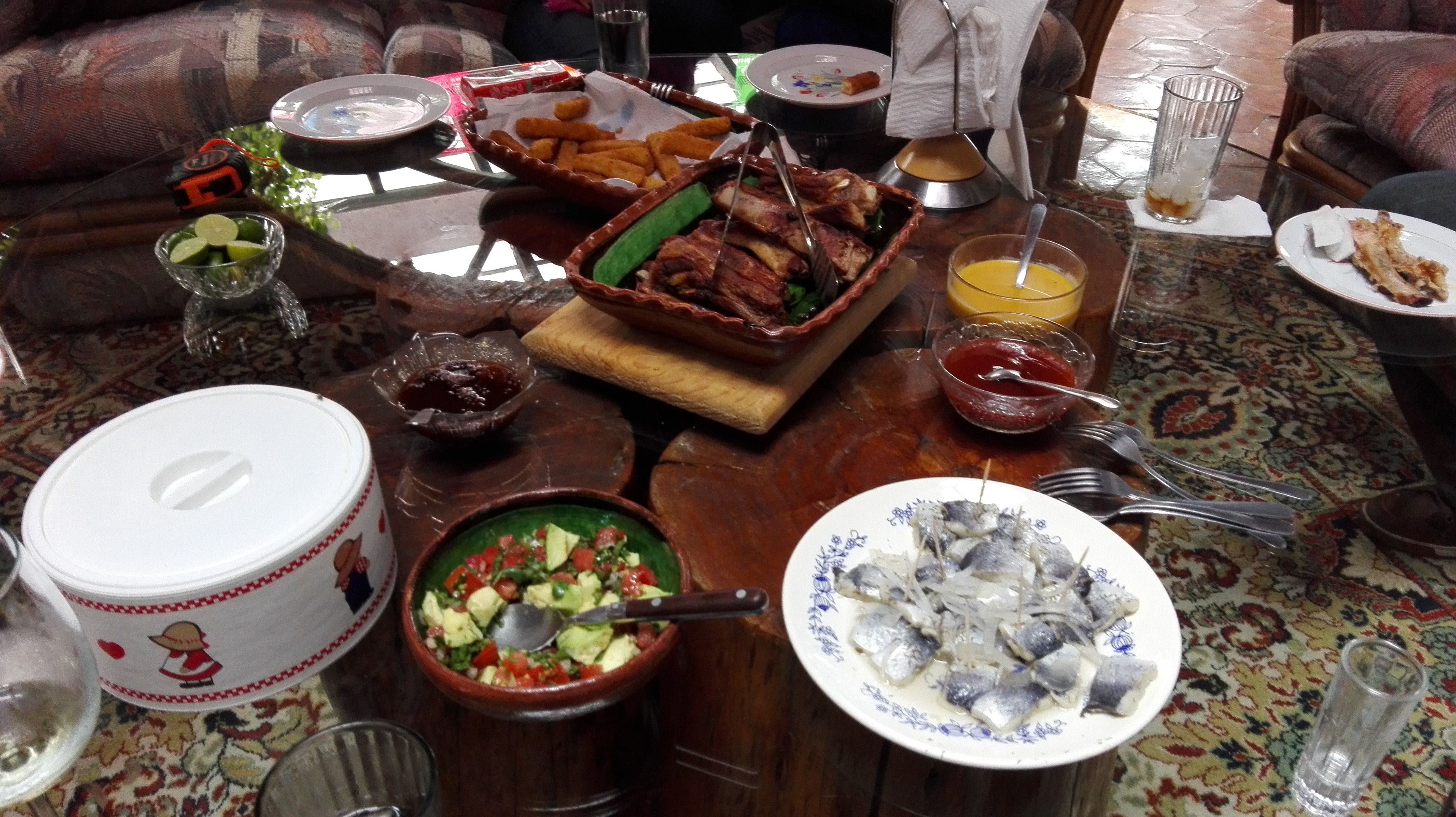 Depending on the day's ride, our lunch will be catered in the fields or at the Ranch. Lunch is usually served around 1-2 pm, and you’ll get to choose from variety of different dishes catered buffet style at the terrace or outside on a good weather. To start with, we always offer a green salad and warm vegetables. For main course we offer meat (pork, beef or chicken) and fish (specially prepared salmon or filets). Pasta, rice, beans, Mexican style corn chips and other will be always served on the Buffet.  We change the menu often so there won´t be same dishes served twice during your stay. Quality wines will be always available on lunch and dinner time.